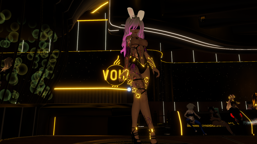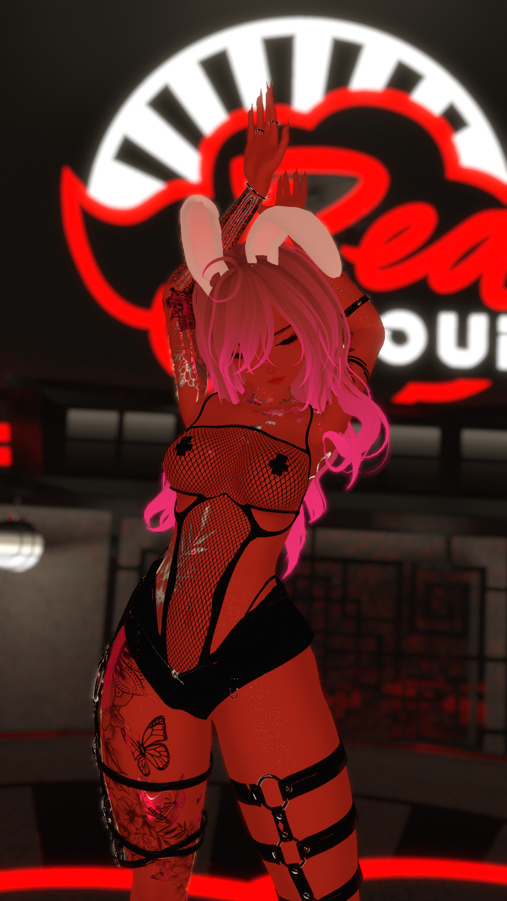 ↠Toggles: Bunny mode, Bucket hat, Arm chain, shorts, fishnets, leg harness, heels.
